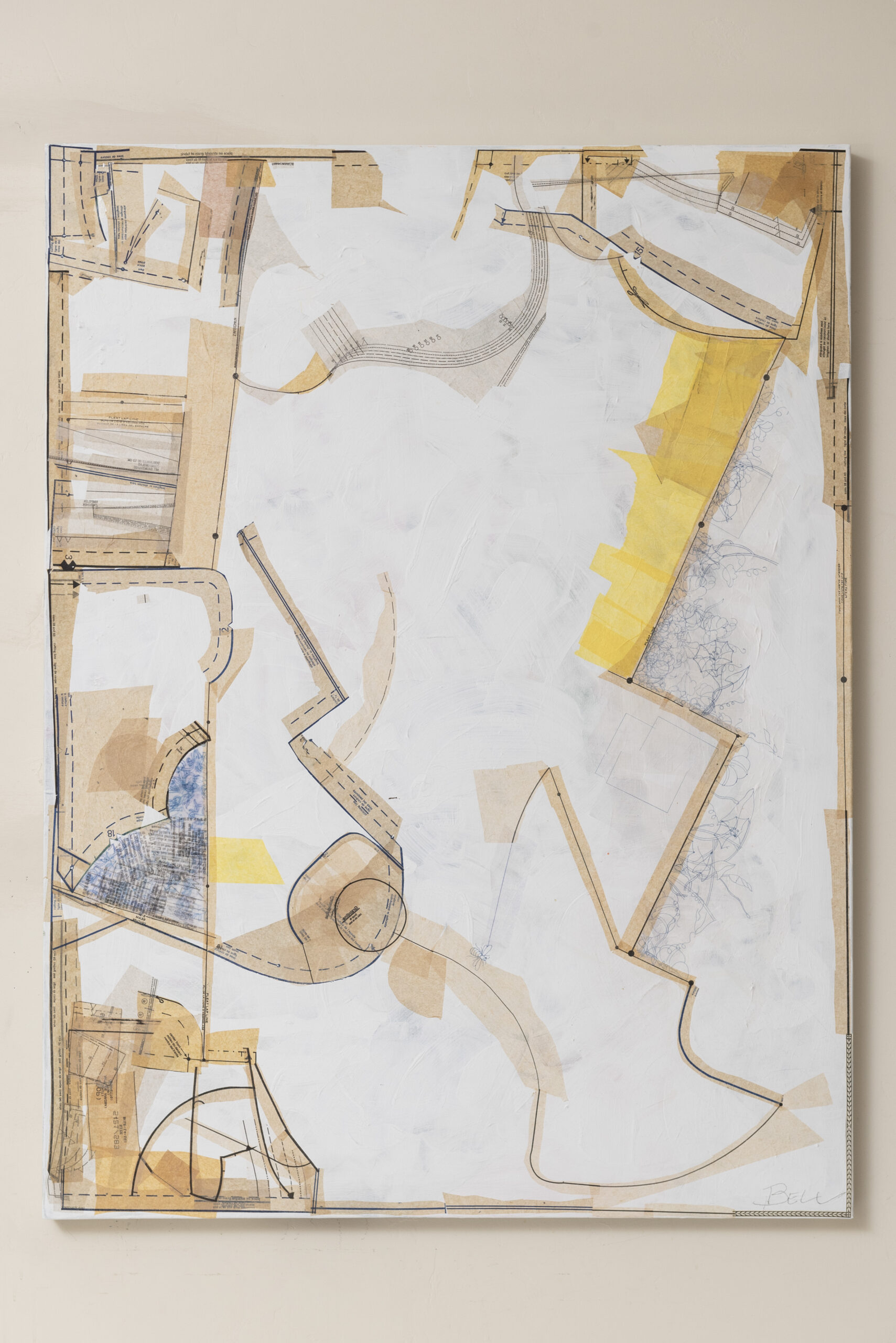Annie Bell’s practice grapples with sustainability as a core value. She volunteers at the local Cattle Creek Thrift Store and embraces an ethos of conservation and environmental consciousness. Her materials are repurposed, her process iterative and ongoing. In her words, the works are “sketches,” never fixed in conclusion. The very idea of an object’s lifespan is renounced: nothing is disposable or over.