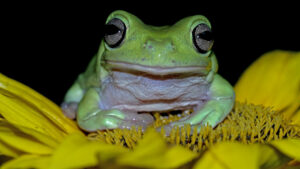 dumpy-frog-litoria-caerulea-green-flower